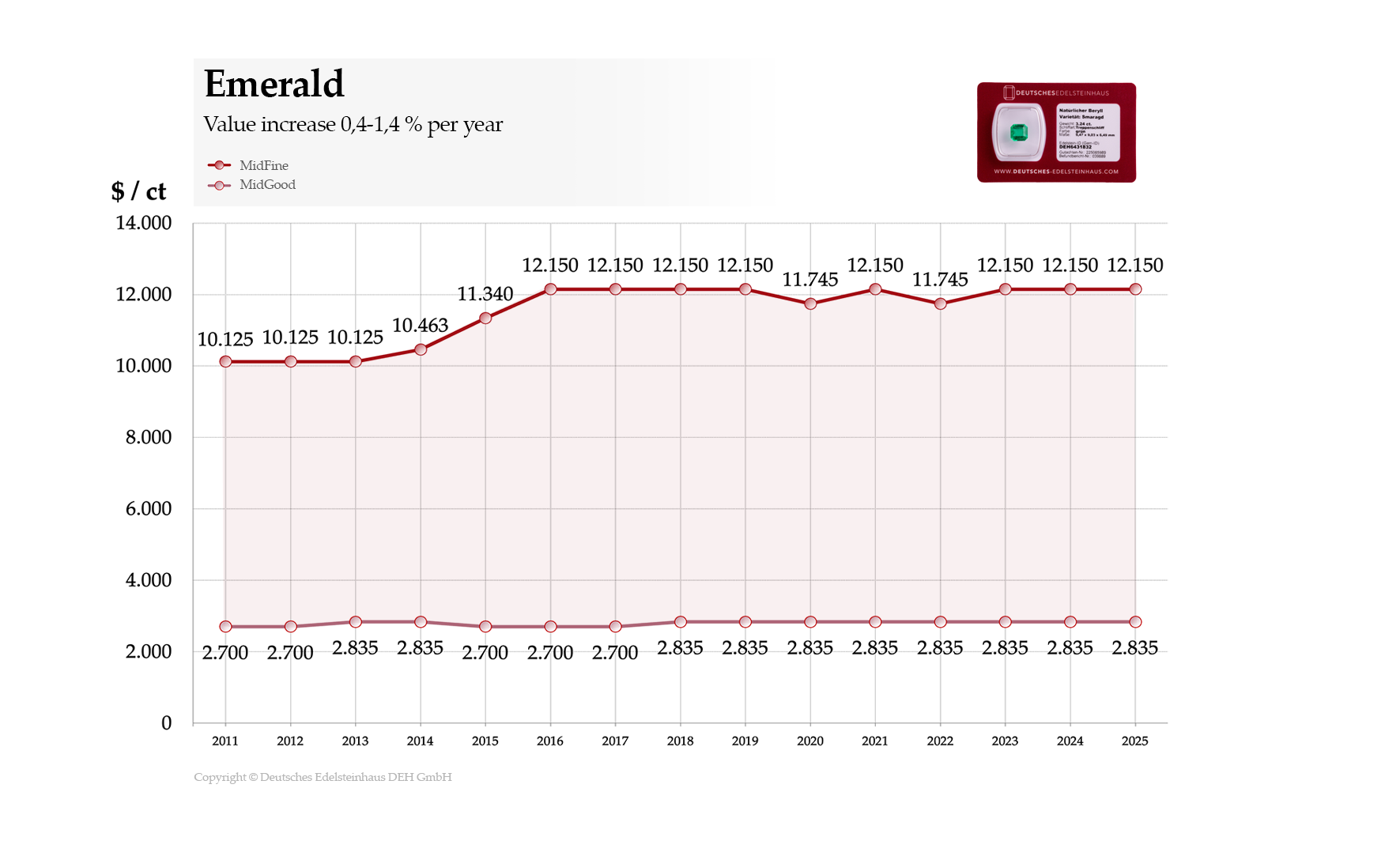 The combination of geological rarity, historical demand, and limited top-end supply positions high-quality emeralds in the upper segment of colored tangible assets over the long term.